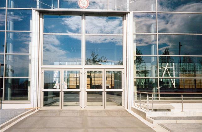 - Door construction totally made of insulating glazed units with emergency exit doors
