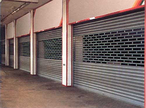 These doors are coiled on a hollow shaft system by irreversible worm gear drives. The basics are put together by roller shutters with various profiles, the tracks, the drum, the drive system with the stop brake and the control device.